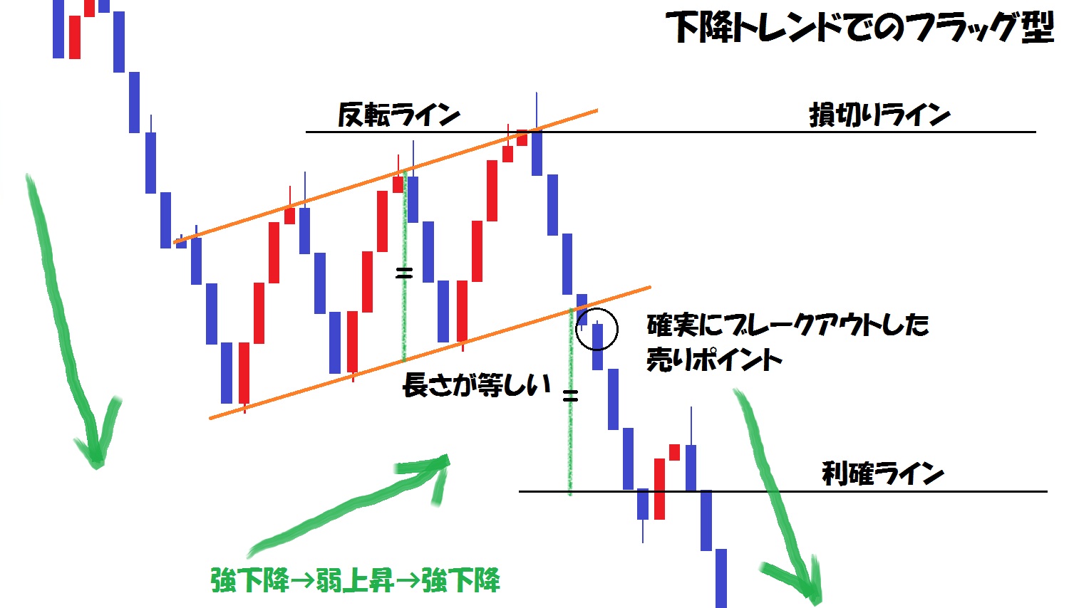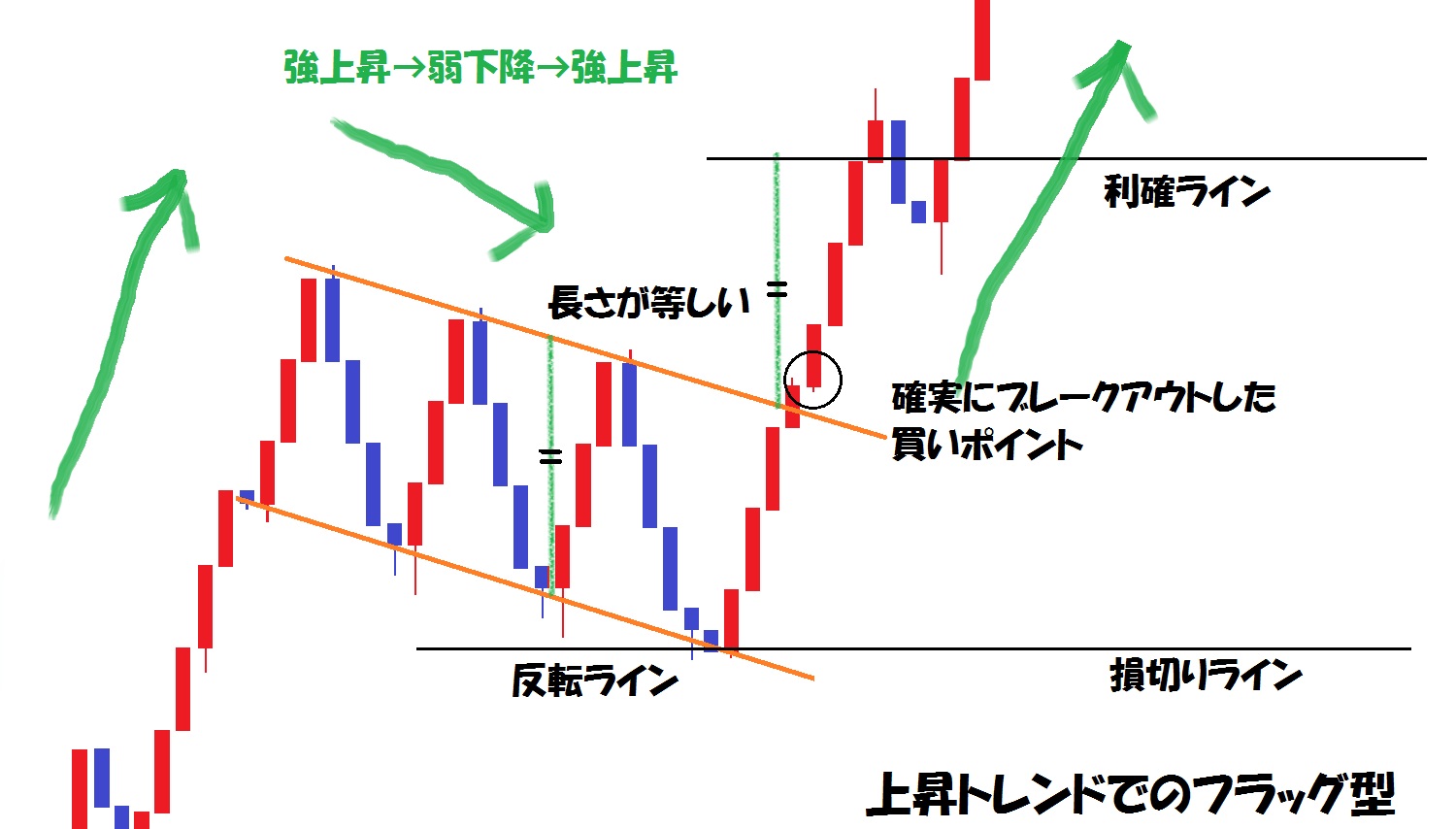 ペナントが成立するのであれば、フラッグ型よりもトレンドの継続が強いといえます。