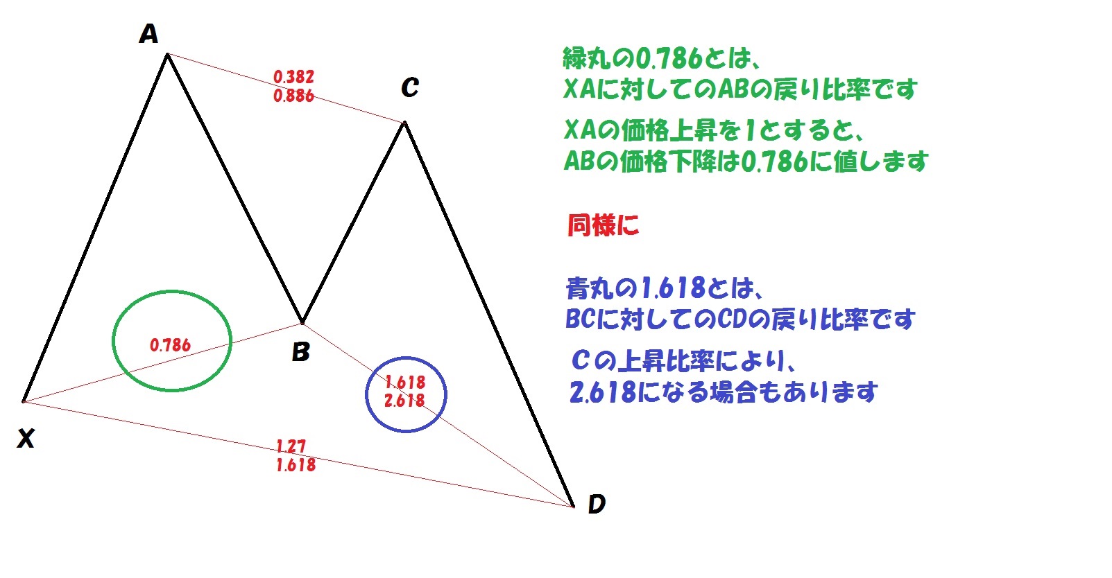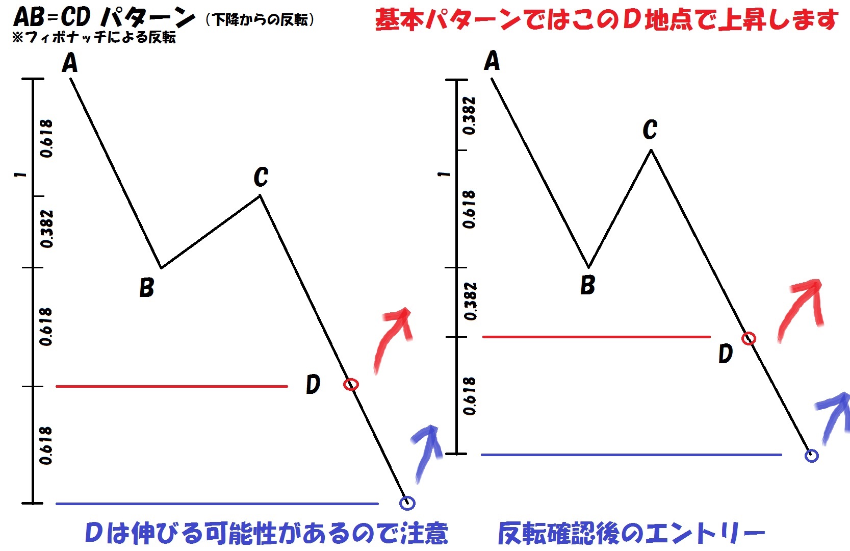 ABに対してのCDの長さも同じように考えられるので、確実な反転がエントリーポイントになります。